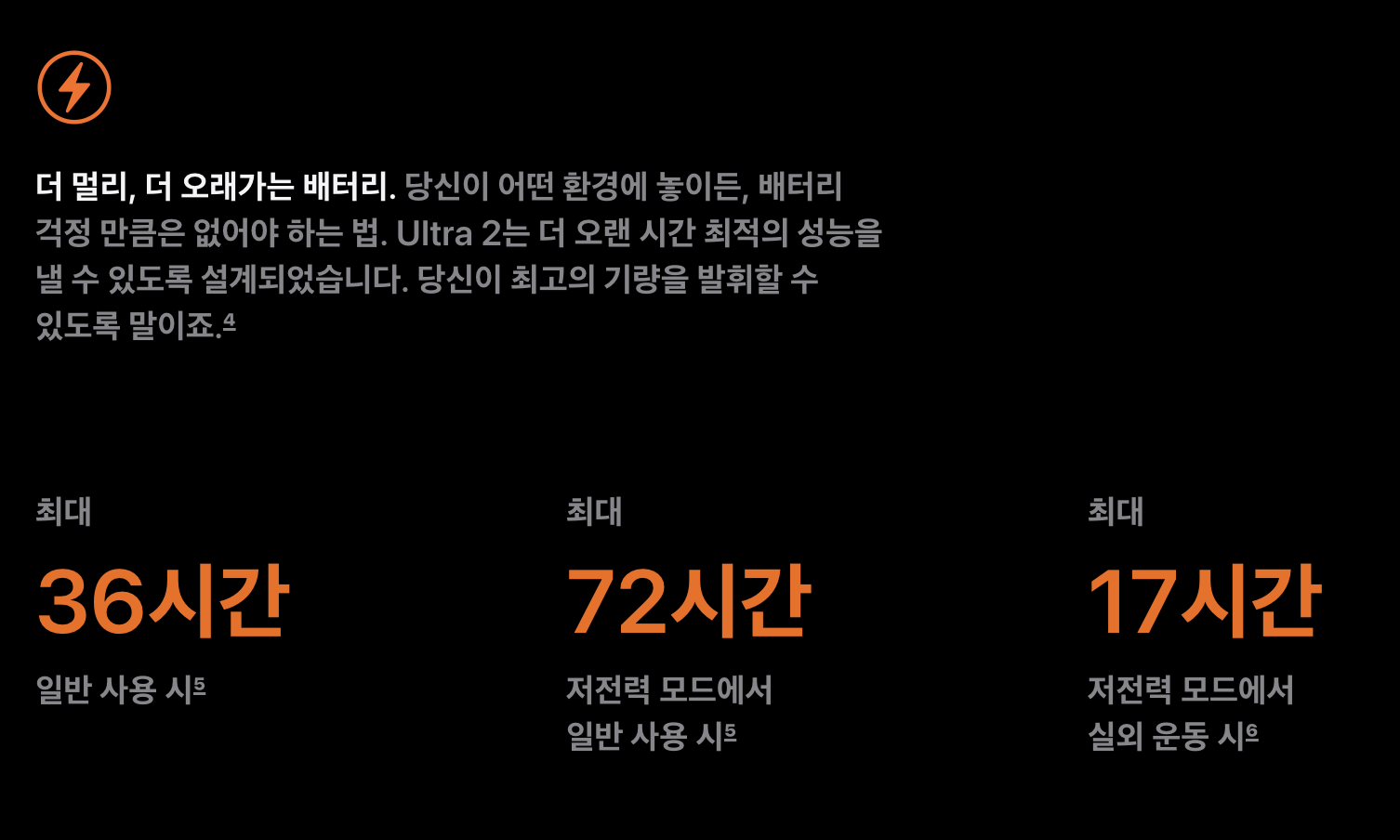 ✔ Ultra 2는 등산, 다이빙 등 아웃도어에 최적화 (최대 36시간 배터리)