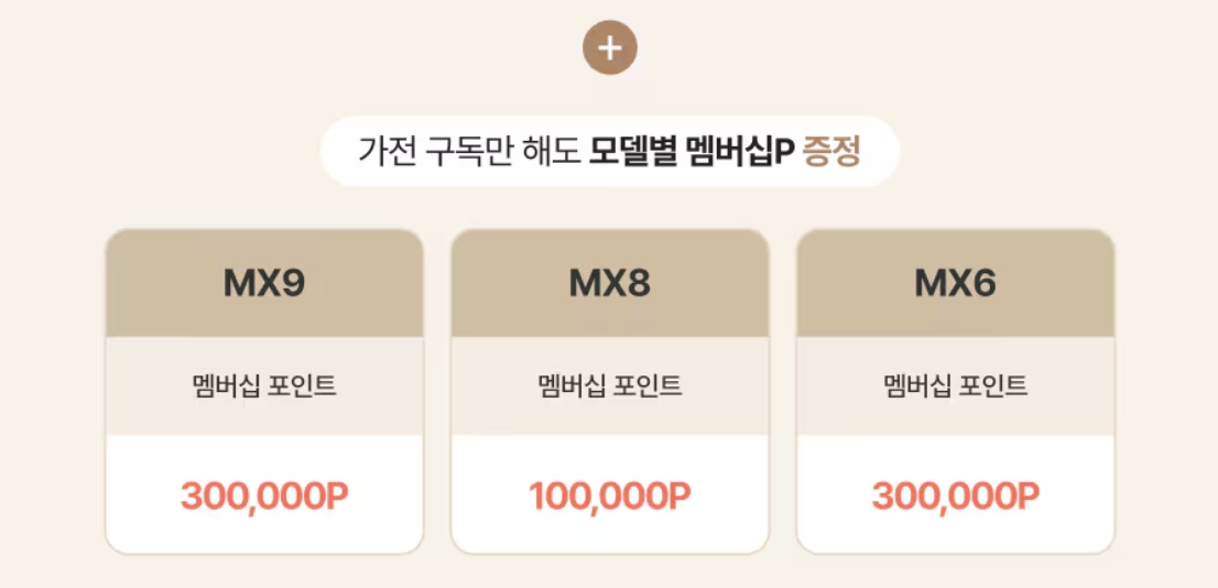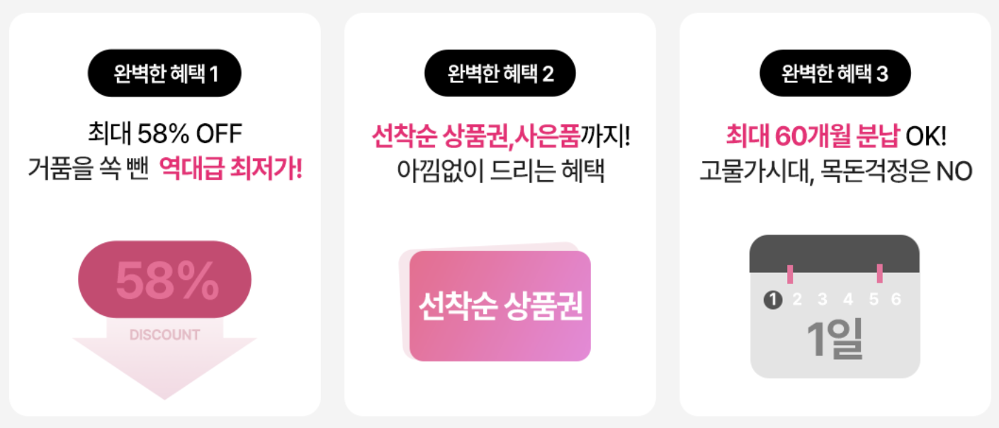 (신형 대비 구형 모델은 렌탈료가 낮지만 성능 차이 큼) - 무이자 카드 혜택 또는 사은품 행사 확인